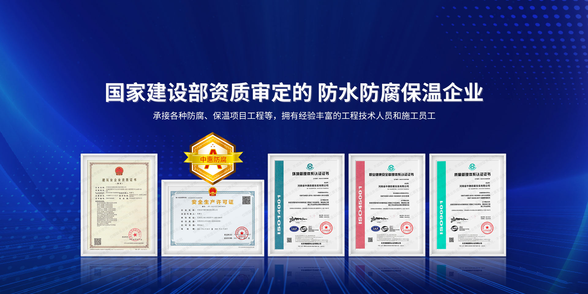 公司經營范圍:防水防腐保溫工程;消防設施工程;建筑裝修裝飾工程;建筑機電安裝工程;電力工程;建筑工程;石油化工工程;工業清洗工程;油罐清洗工程;鋼結構工程;環保工程;模板腳手架工程;電纜防火封堵、防污閃噴涂、外墻外保溫工程;各類施工勞務作業;設備維修、船舶鉚焊、涂裝;電力工程材料、建材、防水材料、防火材料、防腐保溫材料銷售,并相繼通過了GB/T19001-2008idtISO9001:2008GB/T50430-2007質量管理體系認證證書。GB/T24001-2004idtISO14001:2004環境管理體系認證證書。GB/T28001-2011idtOHSAS18001:2007職業健康安全管理體系認證證書。公司是中國防腐蝕于防護協會、中國施工企業管理協會、電力協會和中國鋼結構防水協會會員單位。 公司的經營業務涵蓋了石油、化工、電力、冶金、煤炭、船舶、國防、燃氣、水利、環保、交通運輸、航空及國防軍工和輕紡市政等行業的防腐保溫絕熱設備。鋼結構安裝、防火、防水、金屬噴鍍、聚脲噴繪、陰極保護、防滲透堵漏、玻璃鋼及各種磚版材料襯里、橡膠襯里、煙氣硫和耐酸溶劑腐蝕等工程施工。公司連續十年榮獲“省市先進施工企業”“安全生產先進單位”“重合同,守信用企業”和“AA***資質企業”的稱號。2000年被命名為市級文明單位,2002年被國家工商行政管理局命名為“重合同,守信用的企業”、被中國工業防腐蝕技術協會命名為“防腐蝕企業,能源節約及環境保護領域有豐富的經驗和***的業績。工程一次交驗合格率100%。其中攀枝花鋼鐵公司煉鐵廠四號高爐及熱風爐防腐工程、上海寶鋼公司煤氣柜防腐工程、撫順石油一廠裝置防腐項目、齊魯石化公司稀烴廠高塔防腐工程、吉林化學工業公司煉油廠油罐防腐工程、天津石化熱電廠六號爐頂棚聯絡管保溫工程、大慶油田(太倉)力神泵業工程、中國化學工程第十一建設工程、中原油田勘探局工程、中國石化銷售有限公司華北分部、魯皖輸油管道工程、貴州開磷息烽合成氨工程、陜西黃陵煤化工程、中國石油天然氣西部管道塔里木輸油工程、邯鋼集團邯寶鋼鐵公司煉鐵工程、德州供電工程、吉寶(南通)船廠工程,偃師華潤熱力工程、鄭州熱力總公司。 河南省中惠防腐安裝有限公司愿以豐富的施工經驗,***的技術,***的設備,***的管理,***的服務,竭誠為國內外廣大的用戶提供***滿意、******的工程作品。 我公司愿與國內外同仁一道,團結協作,共同推進防腐蝕行業發展! 公司地址:河南省長垣縣建設路北段360號 固定電話:0373-8866488 郵編:453400 網址:http://www_zhff_com_cn.hzdsbxg.com